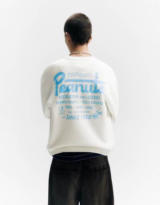 Pull&Bear - Sweatshirt met Peanuts-print op de rug in gebroken wit