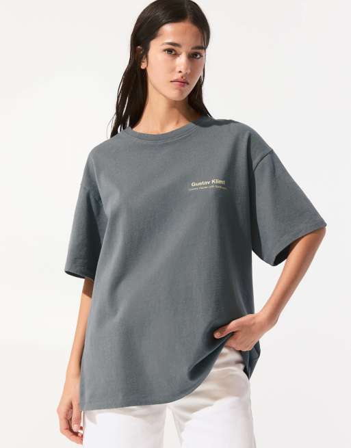 Pull&Bear - T-shirt met 'Country Garden'-print in grijs