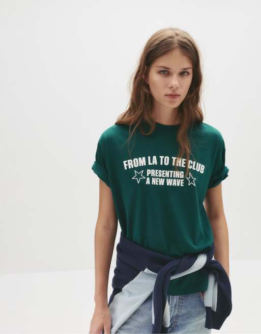 Pull&Bear - T-shirt met grafische Club-print in groen