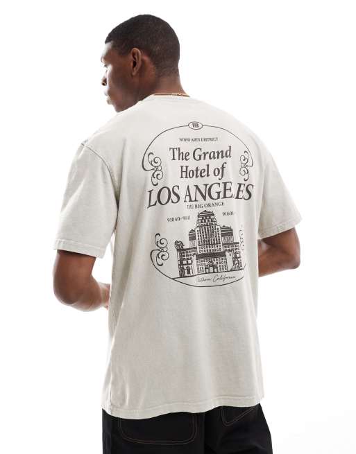 Pull&Bear - T-shirt met grafische 'Los Angeles'-print in lichtgrijs