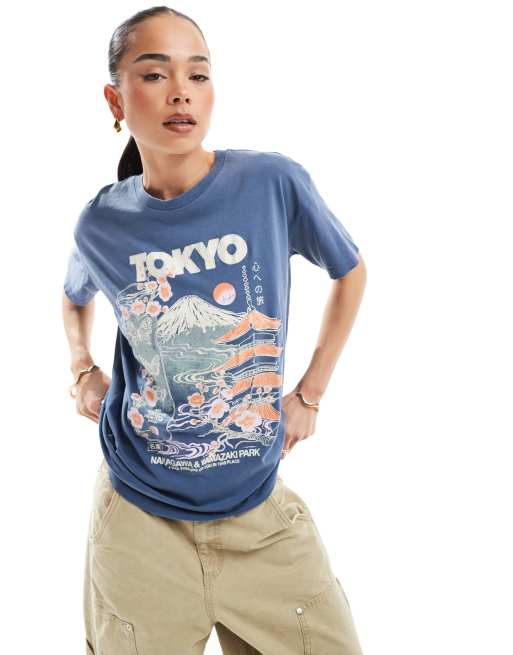 Pull&Bear - T-shirt met grafische print in blauw
