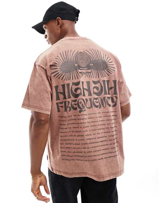 Pull&Bear - T-shirt met high frequency-print op de achterkant in vervaagd rood