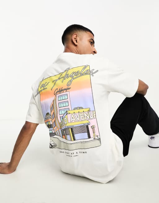 Pull&Bear - T-shirt met 'Los Angeles' print in ecru