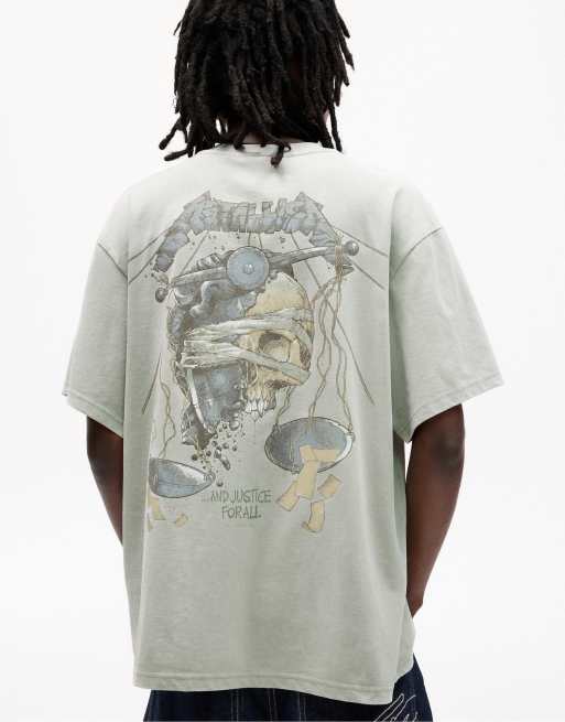 Pull&Bear - T-shirt met Metallica-schedelprint op de rug in lichtgrijs