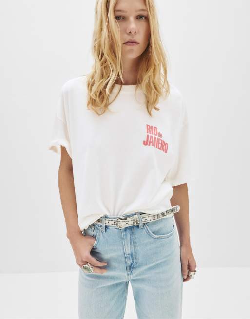 Pull&Bear - T-shirt met 'Rio de Janeiro' in ijsgrijs