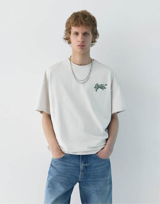 Pull&Bear - T-shirt met STWD-borduursel in zandkleur