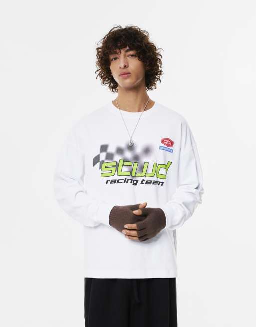 Pull&Bear - T-shirt met STWD Racing Team-print in gebroken wit