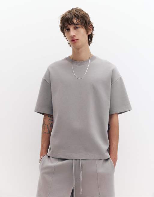 Pull&Bear - T-shirt van zware stof met interlocknaden en korte mouwen in gemêleerd grijs