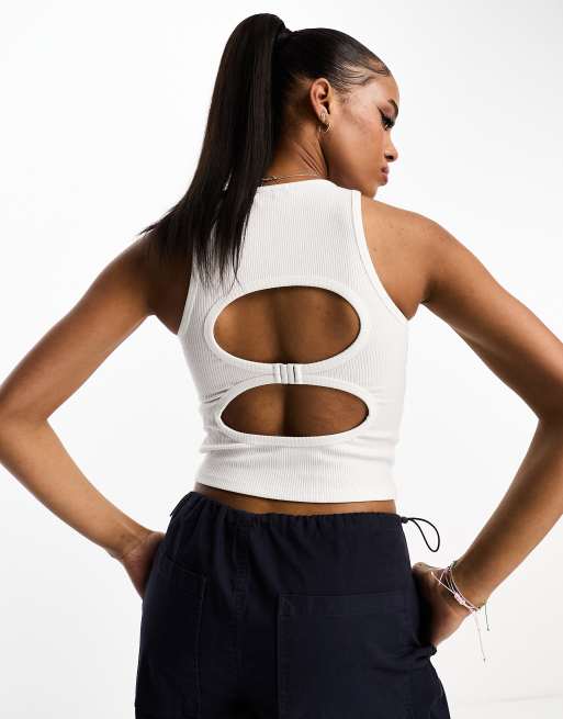 Pull&Bear - Tanktop met open achterkant-detail in wit