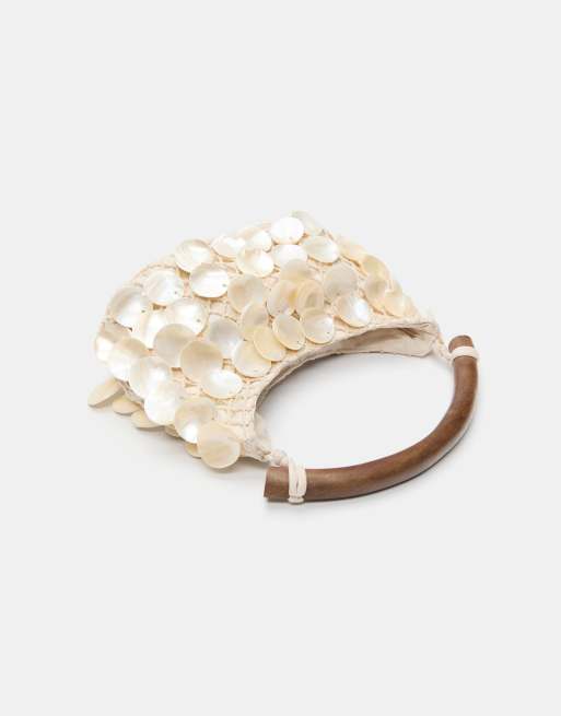 Pull&Bear - Tas met handvat en kralen aan de bovenkant in ecru