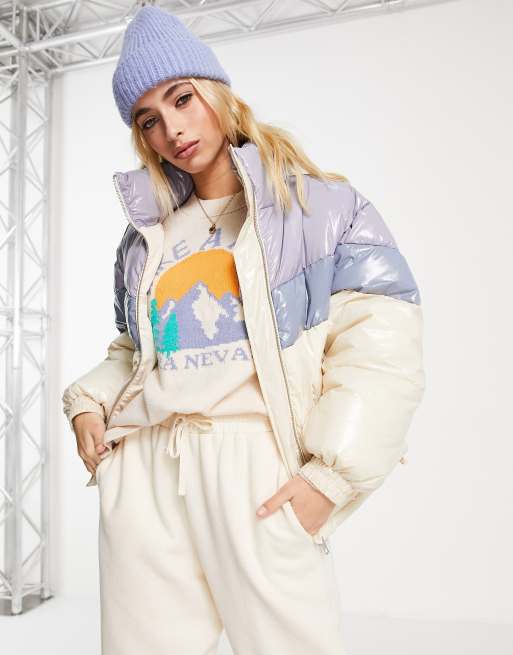 Pull&Bear - Vinyl jack met kleurvlakken in blauw en wit