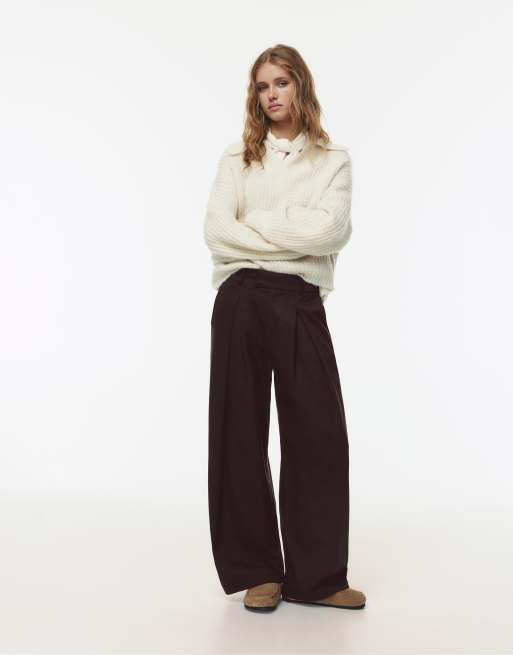 Pull&Bear - Volumineuze pantalon met figuurnaden in bordeauxrood