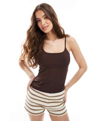 Pull&Bear - Vormgevende cami-top van polyamide in chocoladebruin