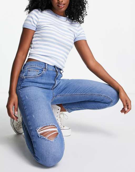 Pull&Bear - Vormgevende push-up skinny jeans in middenblauw