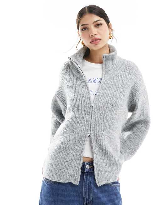 Pull&Bear - Zachte gebreide trui met rits in grijs