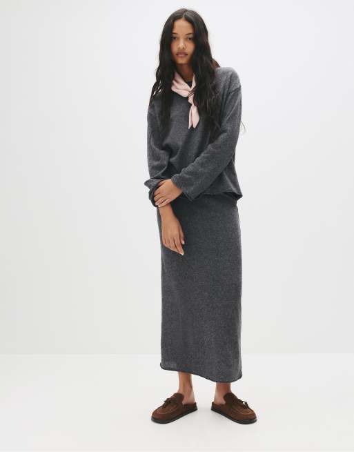 Pull&Bear - Zachte midirok met rechte pasvorm in medium grijs