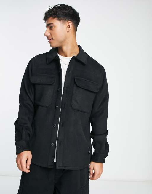 Pull&Bear - Zwaargwicht overshirt in zwart, exclusief bij ASOS