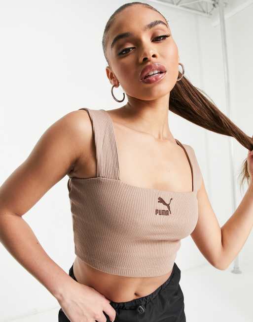 Puma - Classics - Geribbelde crop top met brede bandjes in bruin