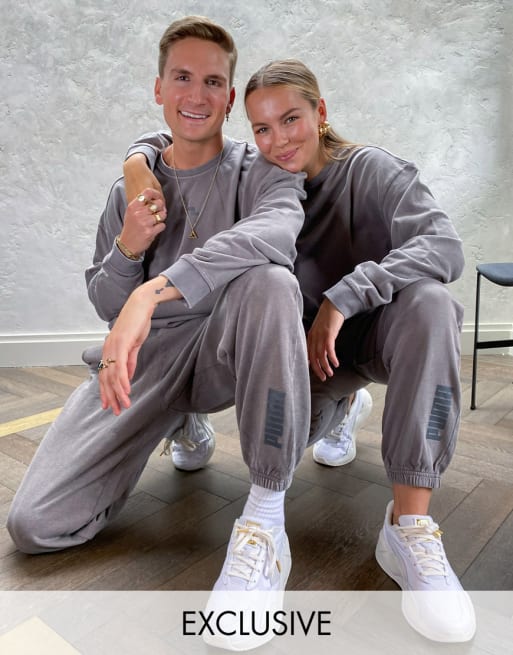 Puma - Exclusief joggingpak in antracietgrijs met wassing