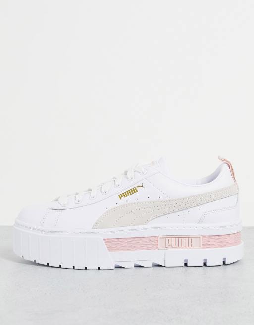 Puma - Mayze - Sneakers in wit, lichtbeige en roze