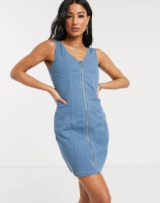 QED London - Denim jurk met rits en wassing in blauw