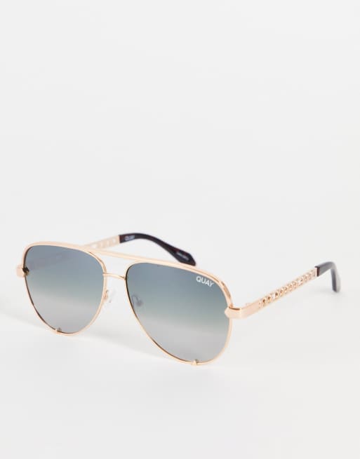 Quay - High Key - Links - Aviator zonnebril met gepolariseerde glazen in roze en groen kleurverloop