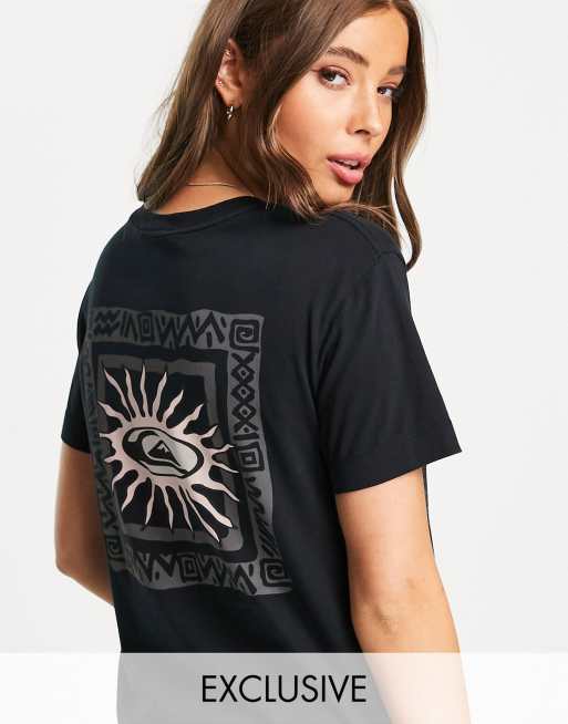 Quiksilver - Cropped T-shirt met logo op de achterkant in zwart met wassing, exclusief bij ASOS