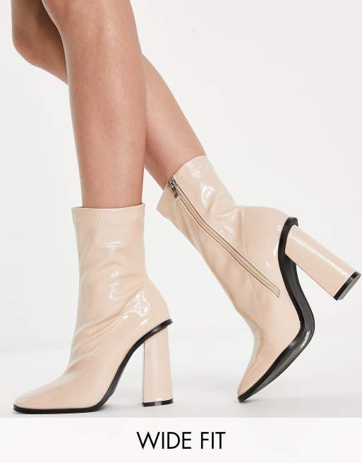 RAID Wide Fit - Saylor - Sock boots van lakleer met blokhak in beigeroze
