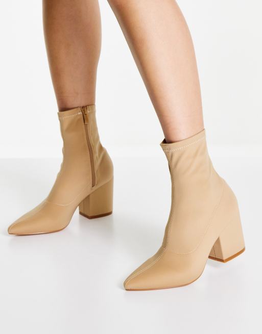 RAId - Kinley - Sock boots met halfhoge hak in camel