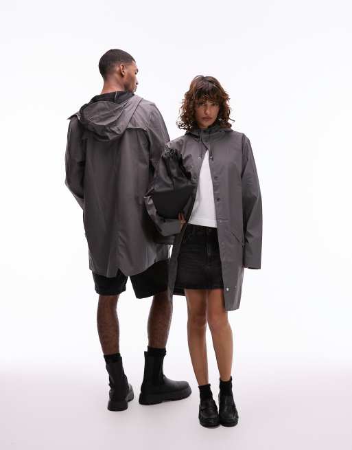 Rains - 12020 - Uniseks waterbestendig lang jack met capuchon in grijs