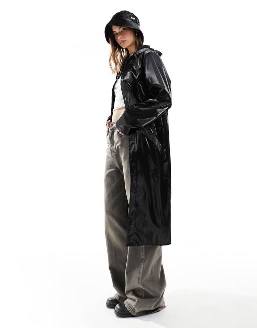 Rains - 18360 - Lange waterbestendige regenjas in glanzend zwart, exclusief bij ASOS