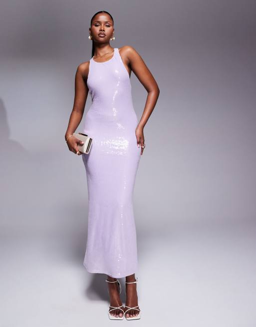 Rare London - Maxi jurk met racerhals, gekruiste achterkant en lovertjes in lila