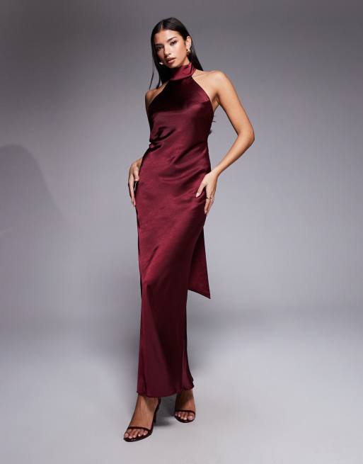 Rare London - Maxi jurk met satijnen sjaal-detail, halternek en open achterkant in pruimpaars