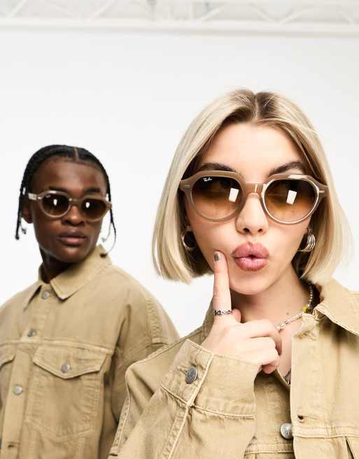 Ray-Ban - Gina Hex - Ronde zonnebril met doorzichtige glazen met bruin kleurverloop