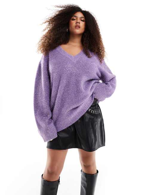 Renee Studio x Michelle Nayla - Plus - Exclusives - Trui van lurex met V-hals en wijde mouwen in paars