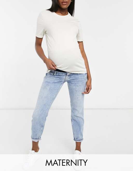 River Island - Zwangerschapskleding - Comfortabele mom jeans met stretch en buikband in middenblauw