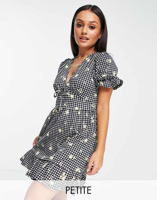 River Island Petite - Gebloemde mini-jurk met knoopsluiting aan de voorkant in zwart