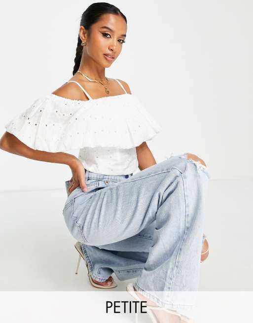 River Island Petite - Korsettop met bardot-hals geborduurde bloemen in crème