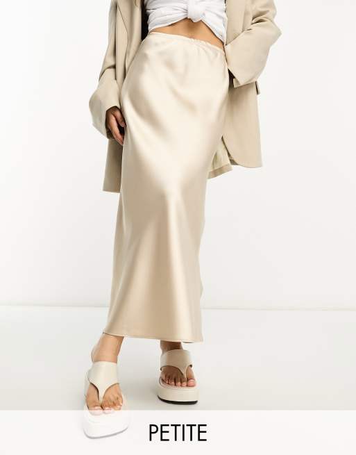 River Island Petite - Maxirok van schuin gesneden satijn in stone