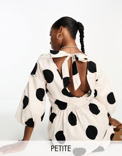 River Island Petite - Poplin midi jurk met pofmouwen in wit