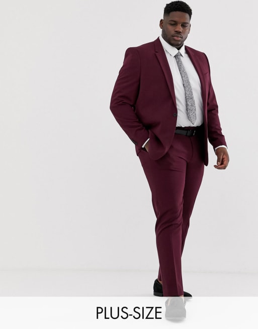 River Island - Big & Tall - Skinny kostuum in bordeauxrood