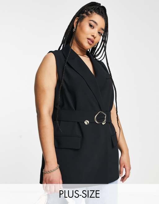 River Island Plus - Mouwloze blazer met riem in zwart