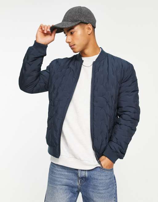 River Island - Bomberjack met doorgestikt diamantpatroon in marineblauw