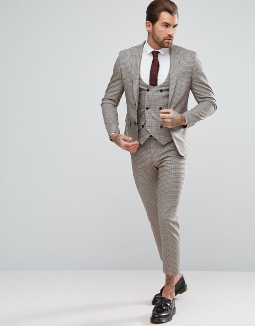 River Island - Bruin geruit skinny-fit kostuum
