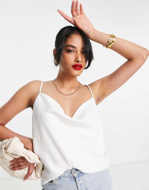 River Island - Cami met gedrapeerde halslijn van satijn in wit