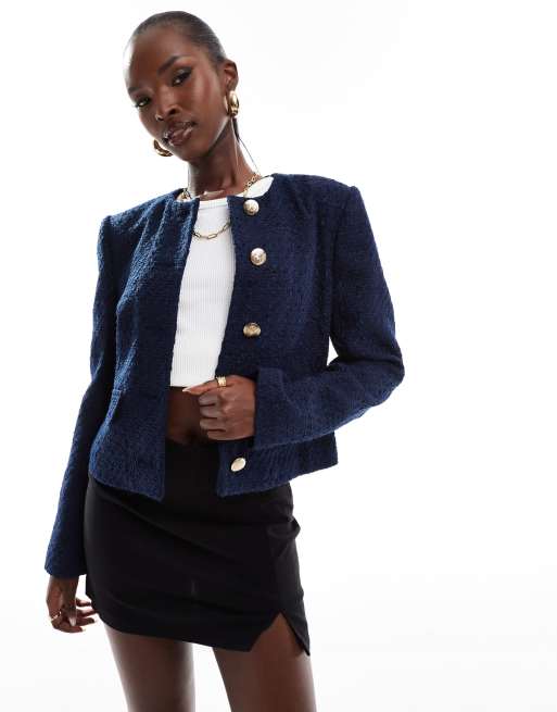 River Island - Cropped bouclé trophy jack in marineblauw