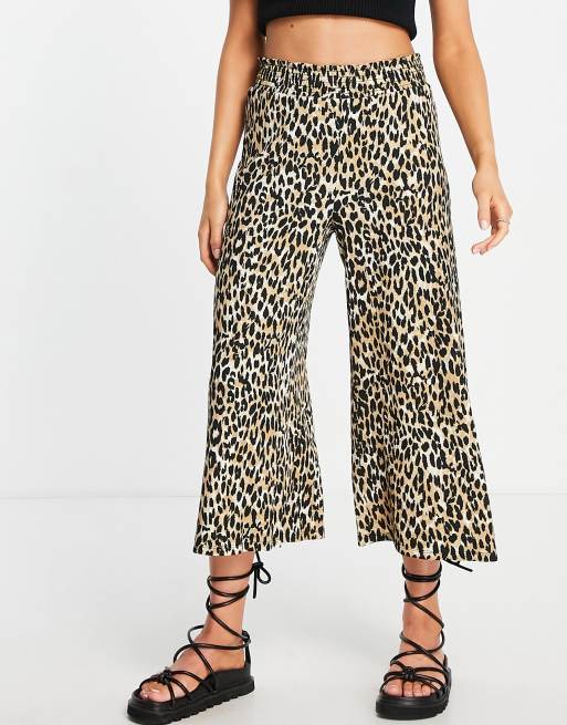 River Island - Culottes met gesmokte taille en bruine luipaardprint