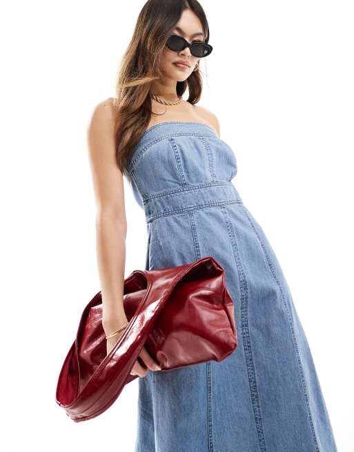 River Island - Denim midi bandeau-jurk in blauw