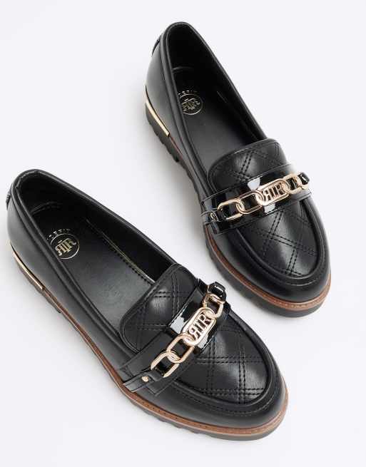 River Island - Doorgestikte loafers met brede pasvorm en kettingdetail in zwart
