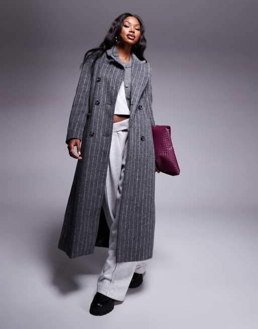 River Island - Double breasted jas met krijtstreep in donkergrijs